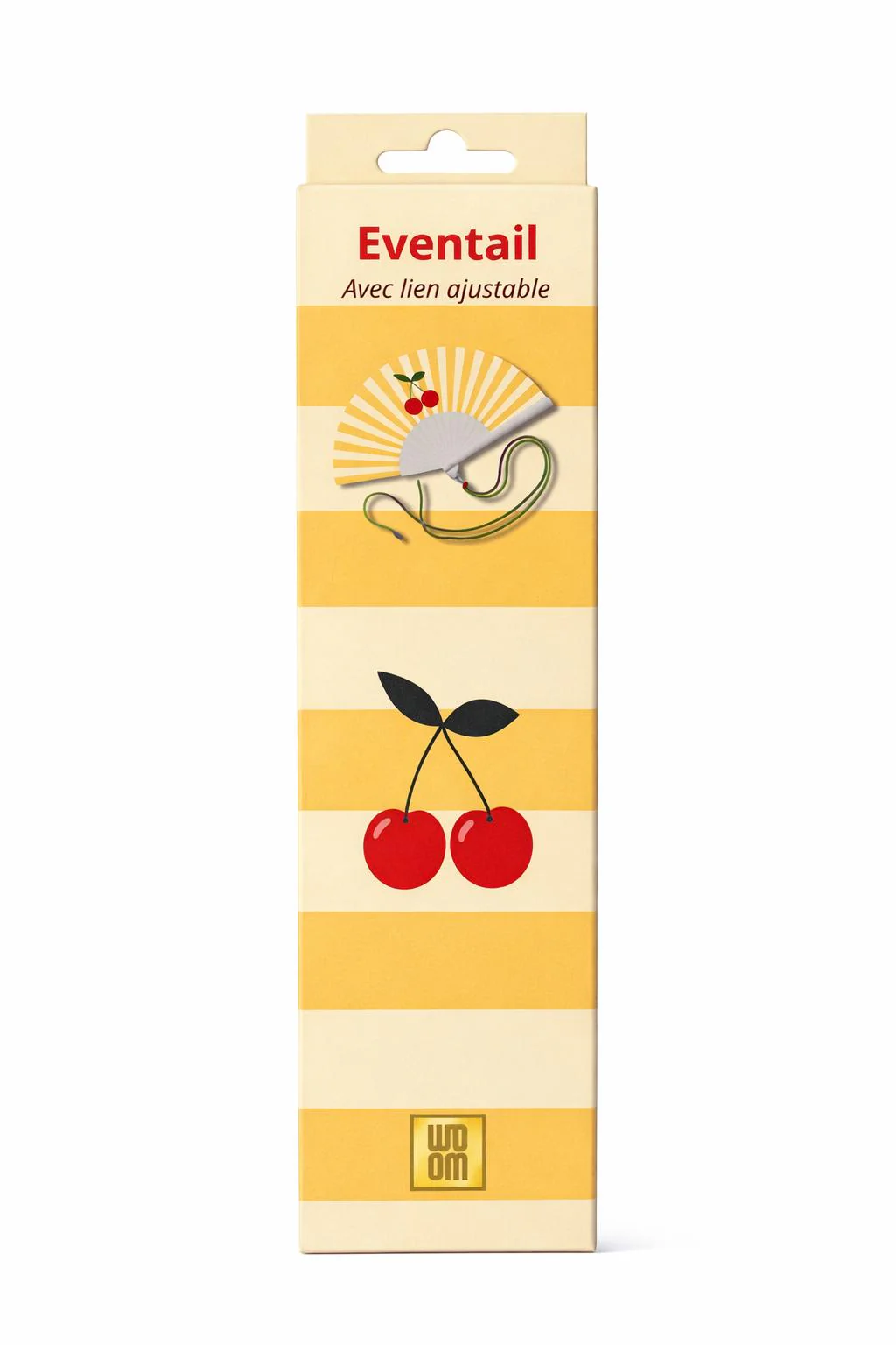 Avec son motif cerises iconique et ses rayures jaunes lumineuses, cet éventail apporte une touche joyeuse, rétro et résolument estivale.